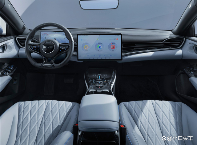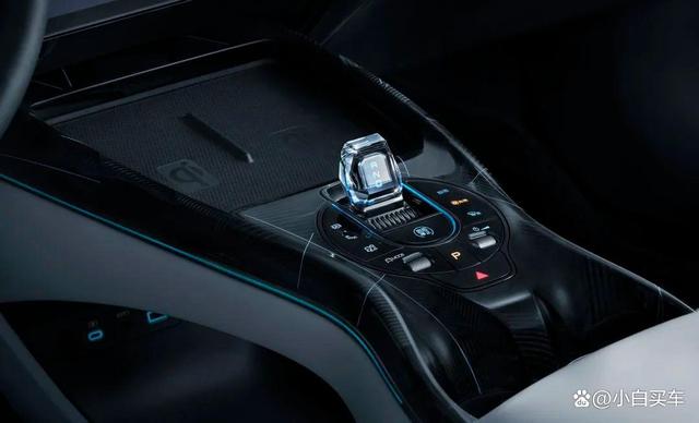 水晶挡杆也是一大亮点,与周边集成了包括启动按键、动力模式选择、空调与音响控制等常用功能的机械按键,共同构成被称作“海洋之心”的控制中枢,官方表示其设计灵感是源自海洋的水滴。