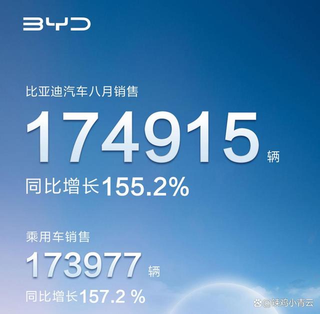去年,国内新能源如雨后春笋,一个个新品牌出现,而比亚迪这样的传统汽车厂商也紧跟步伐,在大力投资新能源技术研发,站稳脚跟的今年3月份全面停止传统燃油车的生产。而在这之前去年8月份的同期新能源汽车销量为61409辆。短短一年的时间,比亚迪就将自己新能源汽车的销量翻了一倍不止,累计销量实现了267%的增长。