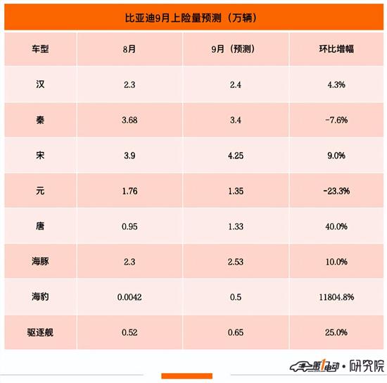 比亚迪9月批发销量预计19.5万辆(含出口海外),我们预计比亚迪大概率又将超越一汽大众成为9月中国乘用车市场销量冠军。