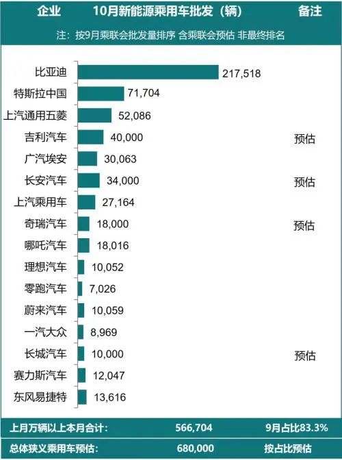 在批发销量榜单中,比亚迪当月销量也3倍于第二位的特斯拉,延续着自身在新能源市场的统治力。
