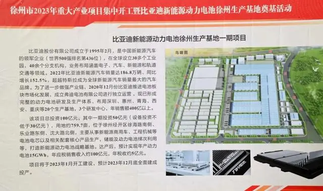 电动知家消息,1月4日,徐州市委、市政府举行2023年全市重大产业项目集中开工暨比亚迪新能源动力电池徐州生产基地奠基活动。市委书记宋乐伟宣布2023年全市重大产业项目集中开工,市委副书记、市长王剑锋讲话,市人大常委会主任王安顺出席。