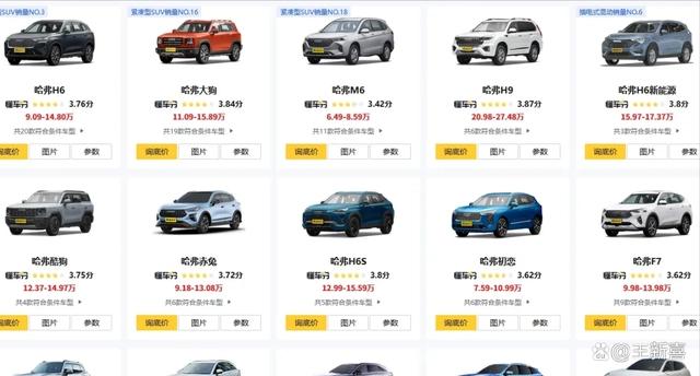 而长城在技术、品牌以及产品等各方面不占优势的情况下,追求单车利润的打法,比如哈弗H6新能源55km的需要16万,宋PLUS dmi 51km的是15.28万,这其实就是被比亚迪精准狙击了。
