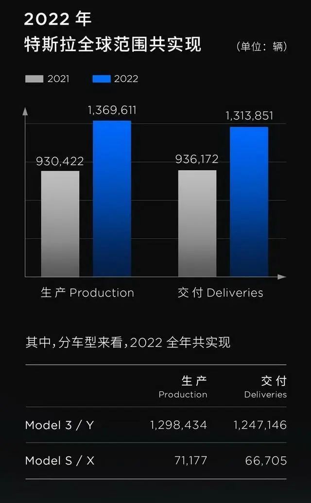 特别是在竞品增多,产品优势差变小的情况下,特斯拉的销量增速不免受到影响。财报数据显示,特斯拉2022年全年交付量同比增长了40%,而前年这一数值为87.2%。