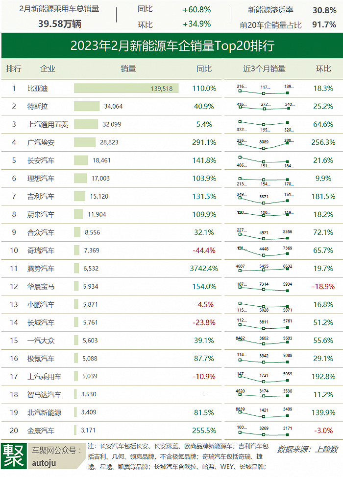 广汽埃安排名第四,28,823辆的成绩创其历史新高;同时,其291.1%的同比增长和256.3%的环比增幅,均位于榜单前列。经历1月的小低谷后,广汽埃安迅速攀升至巅峰,看来,2月官方推出的限时促销优惠活动效果显著。