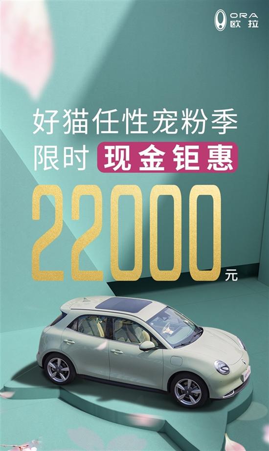 3月19日晚,长城欧拉汽车发布消息称,针对2023款好猫推出了现实现金钜惠活动,现金补贴2.2万,时间为3月20日至4月20日。
