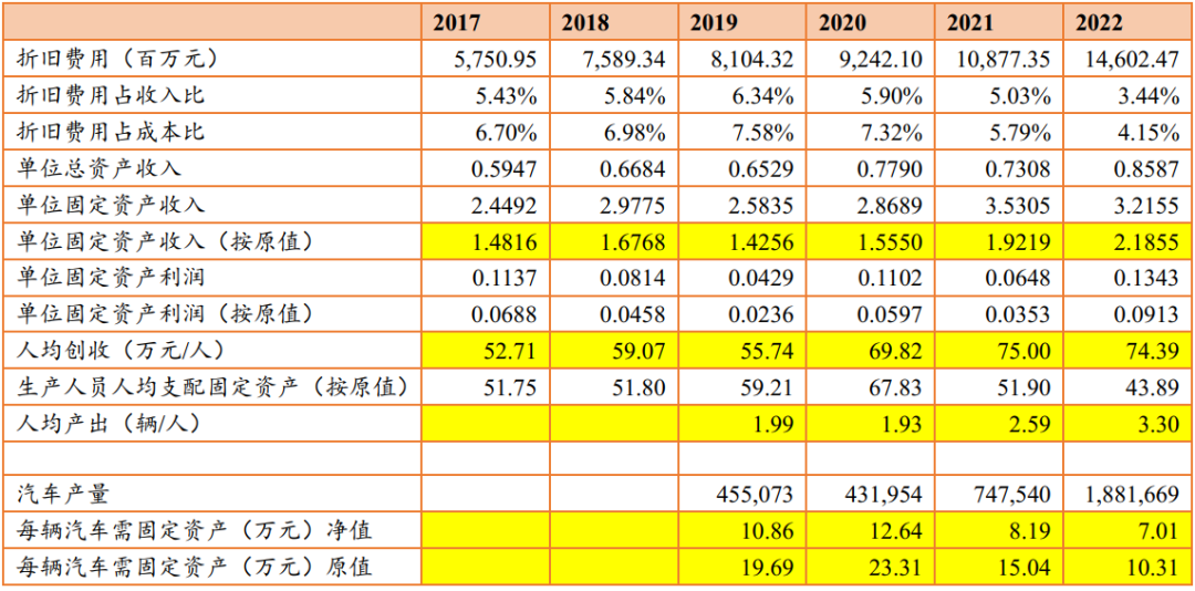 如果假设单位固定资产的创收能力(按原值)不变(就假设1块钱固定资产带来2块钱收入吧),并且假设资本开支都能够及时变成产能(且是线性变化),那么2021年373亿的资本开支,在2021年能释放373收入,在2022年释放746亿收入,增加373亿,加上2022年的975亿,大概要增加1348收入,而2022年实际增加了2079亿收入。差距可以由1块钱固定资产产出增加来解释。