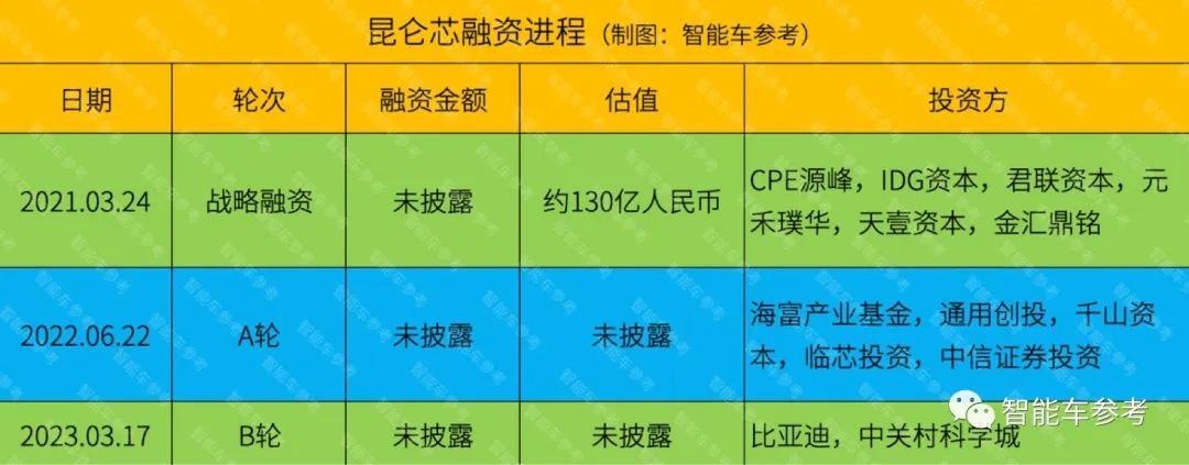 昆仑芯的新融资,没有官宣,但股权工商信息已经变更,B轮融资,投资方包括比亚迪和中关村科学城。