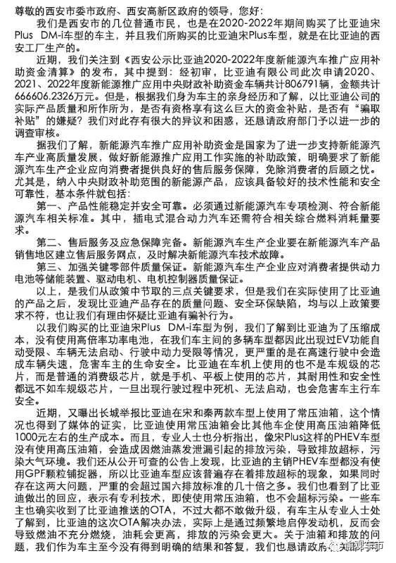 总之,我说了不算,署名为比亚迪车主以及西安热心市民的那些人说了也不算,但总有人能说了算。我们期待后续进展。