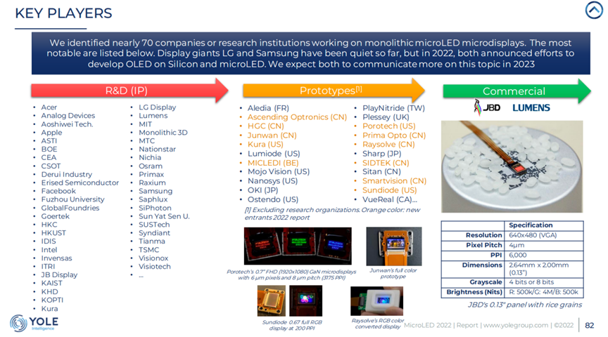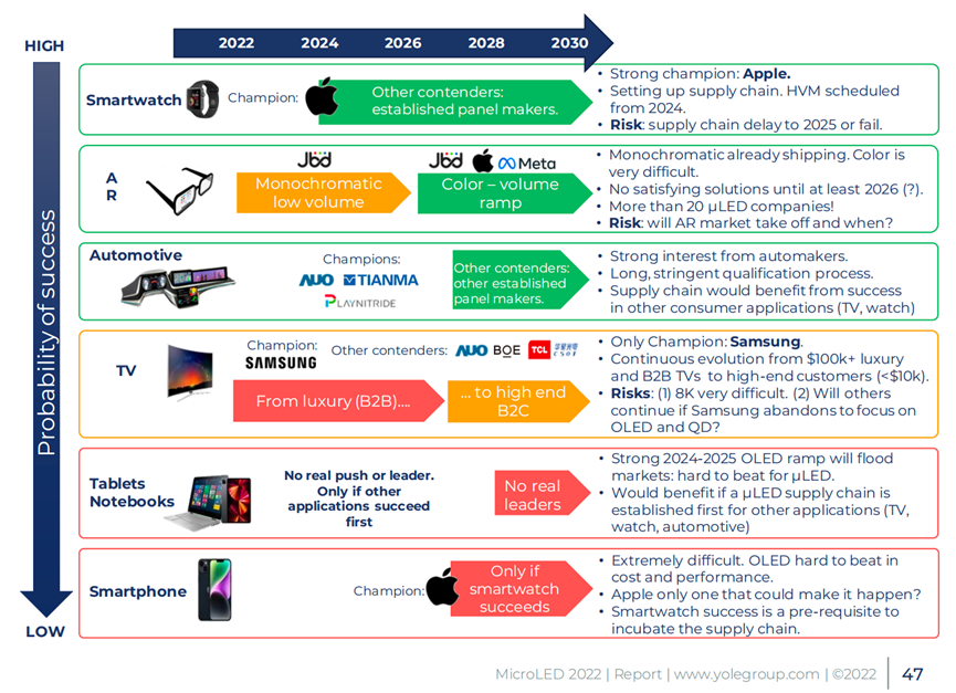 2022-2030 MicroLED Application roadmap, MicroLED 2022 Report,Yole