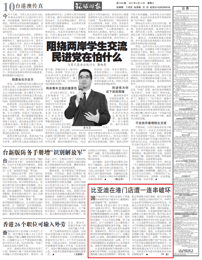 据香港《星岛日报》13日报道,12日凌晨3时57分,警员巡逻经过尖沙咀中晶金融中心时,发现比亚迪陈列室的橱窗玻璃被淋上红油漆,地上遗留的油漆痕迹范围达20多平方米,现场附近遗留一个2公升的红漆罐。到了凌晨4时,位于元朗雄伟工业大厦的地下陈列室遭凶徒驾驶私家车冲撞,导致大闸门凹陷变形,随后凶徒驾车逃离现场。清晨6时许,湾仔告士打道比亚迪陈列室旁的新银集团中心大门,也遭凶徒淋上红油漆,现场遗留的油漆罐与警方在尖沙咀发现的是同一品牌。位于天水围屏厦路的比亚迪服务中心也未能幸免,清晨7时被发现遭歹徒淋红油漆。