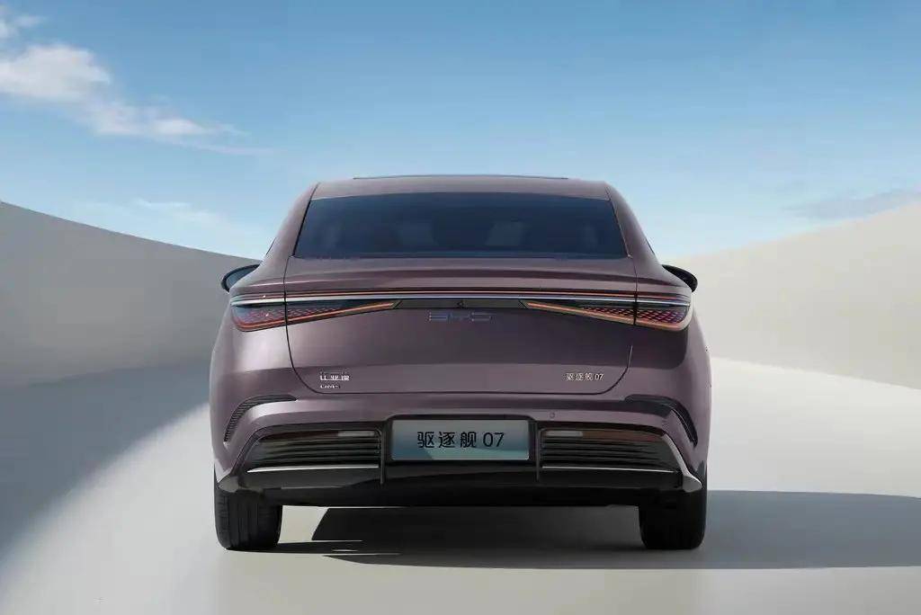 比亚迪驱逐舰07的定位为中型轿车,它的车身尺寸为4980*1890*1495mm,轴距为2900mm。新车的车身造型真的只能用完美来形容,无论是车身比例还是线条的设计,都很流畅自然。另外,它的车身造型十分低趴,搭配上溜背式的车顶造型和多幅式的轮毂,运动感是自然而然就彰显出来,不是那种很生硬的刻画。尾部的造型则具有不错的未来感,尾灯采用了贯穿式的造型,并且加入了贯穿式的镀铬饰条进行装饰,下包围则使用上了大面积的黑色饰板进行装饰,层次感也做得比较出色。