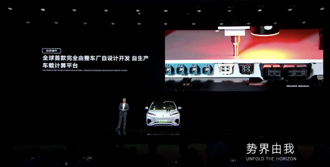 2022 年 GTC 大会上,英伟达宣布与比亚迪进行合作,比亚迪将会在后续量产车型上搭载英伟达 Orin 芯片。但比亚迪基本没有在公司宣传层面与英伟达互动。在 7 月初的腾势 N7 上市发布会上,比亚迪集团副总裁、智能化平台总设计师杨冬生虽然说明车辆使用了英伟达 Orin X,但在各项系统功能介绍中都在不断强调自主研发设计与生产。