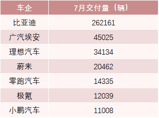值得注意的是,“蔚小理”等造车新势力7月交付量均回到了1万辆以上水平。