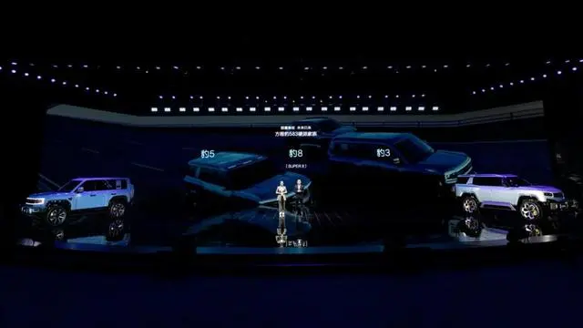 比如说呢,方程豹搭载了一套前后电子差速锁+能量中锁的“智能三把锁”系统,可以实现“前轮正转,后轮反转”的“豹式掉头”,转弯半径做到只有 3.4 米,能在发布会展台上扭转自如。