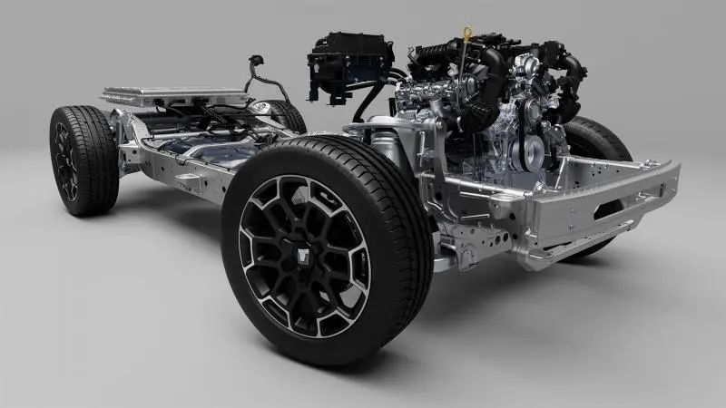 而像其他混动越野车型,比如 BJ60 ,虽然也是前双叉臂,但用的是增程动力,动力总成的体积要小得多,一般用横置就行了,也更省钱。