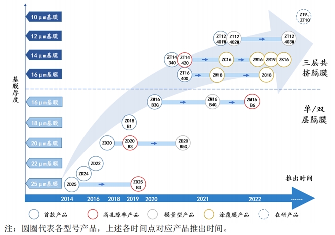 中兴新材的锂离子电池隔膜产品主要包括基膜及涂覆膜两大类,主要应用于磷酸铁锂电池的动力及储能场景。其中,基膜是指未经涂覆的成品隔膜,涂覆膜则是涂覆了无机或有机材料的功能涂层隔膜。