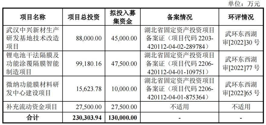 本次上市,中兴新材拟募集13亿元,主要用于武汉基地的扩产和研发。