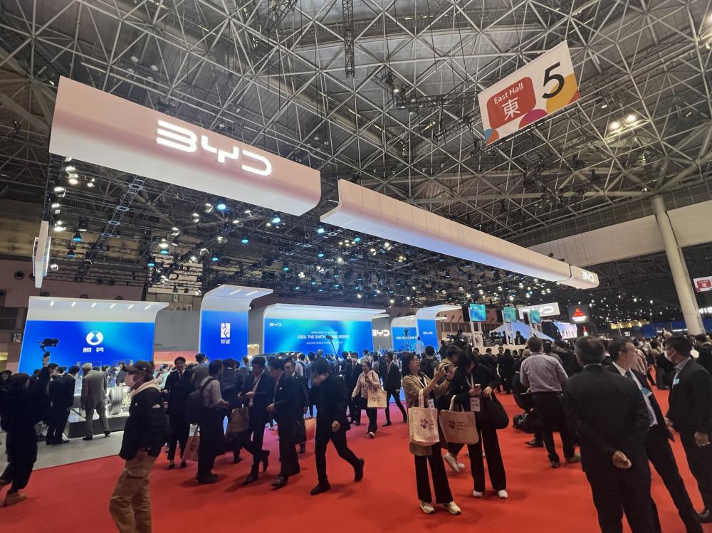 据记者观察,车展开幕首日(专业观众日),比亚迪展台就受到了日本专家与日本媒体较大的关注,不论是展台的规模还是现场的人流量,都毫不输旁边具备主场优势的日产、本田。