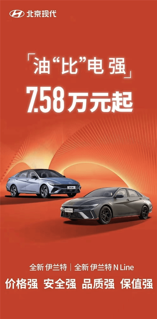 而现代则是第一个正面回击油电大战的车企,全新伊兰特起售价从9.98万降至7.58万,并喊出“油比电强”的口号作为反击。