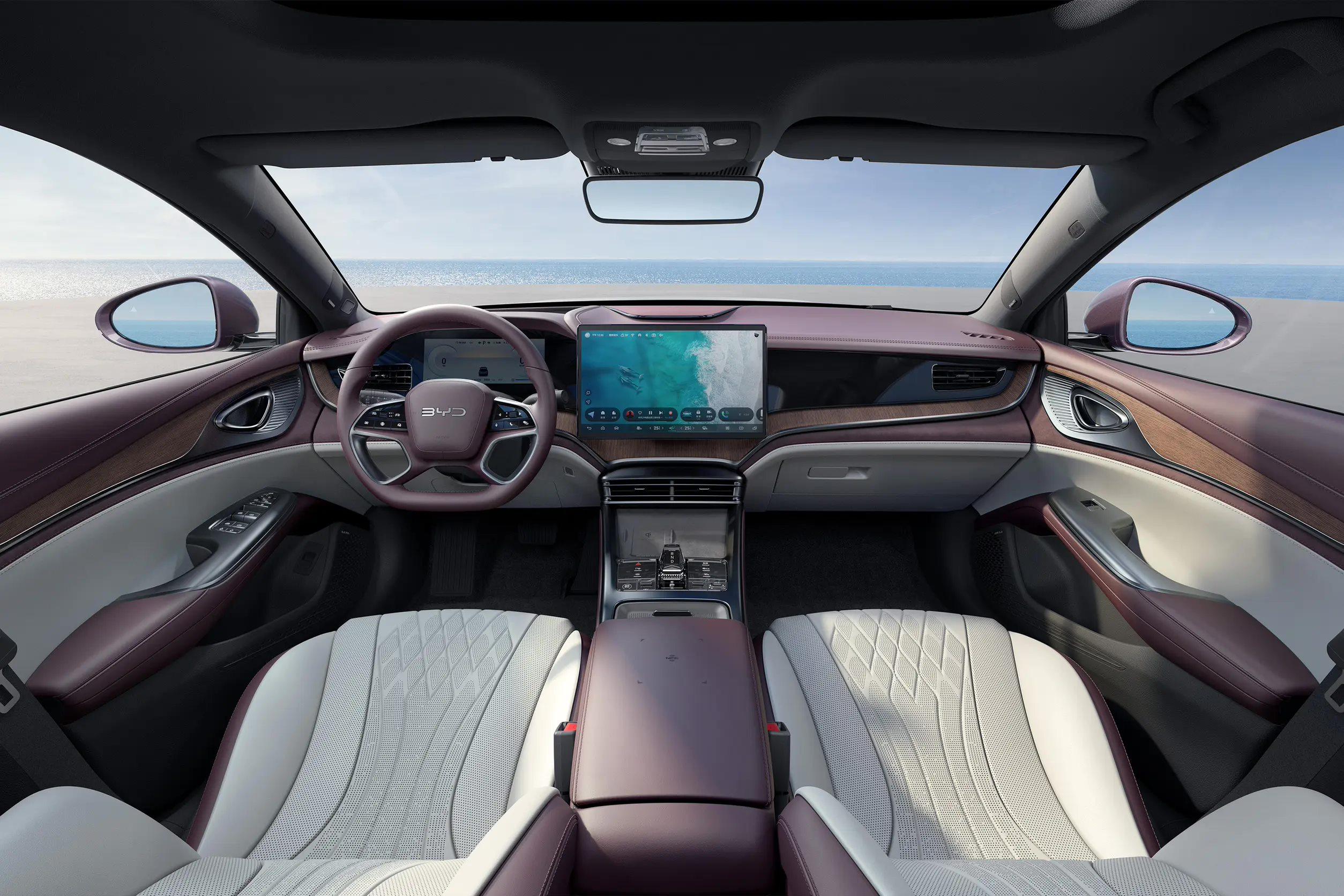 该车尺寸为 4980*1890*1495mm,轴距为 2900mm,配备了 W-HUD 抬头显示系统、15.6 英寸自适应旋转悬浮 Pad 和 10.25 英寸全液晶仪表,主副驾均支持多向电动调节。