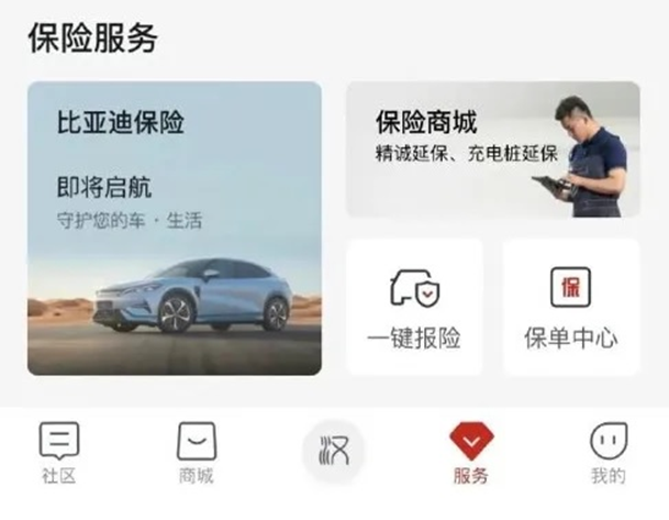事实上,5月3日,比亚迪就在官方APP中设立了保险服务入口,不过目前该功能还不支持在线投保。