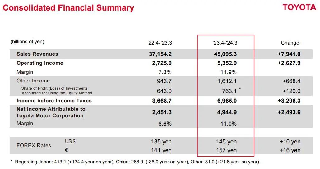 当然,销量是衡量企业非常重要的指标,但不是唯一的指标。近期,丰田汽车公布,其2023年营业利润首次突破5万亿日元。在中国市场“哑火”的丰田,再登全球车企盈利之首,尽管这其中有日元贬值带来的额外增益(6850亿日元),但对不少中国车企而言,多少有点扎心了。
