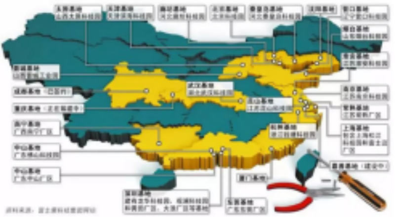 在中西部地区,布局太原、晋城、郑州、济源、鹤壁、濮阳、兰考、周口、武汉、长沙、衡阳、南宁、重庆、成都等地,重点发展精密模具、自动化设备、镁铝合金、汽车零部件、光机电模组、智能手机、平板电脑等。