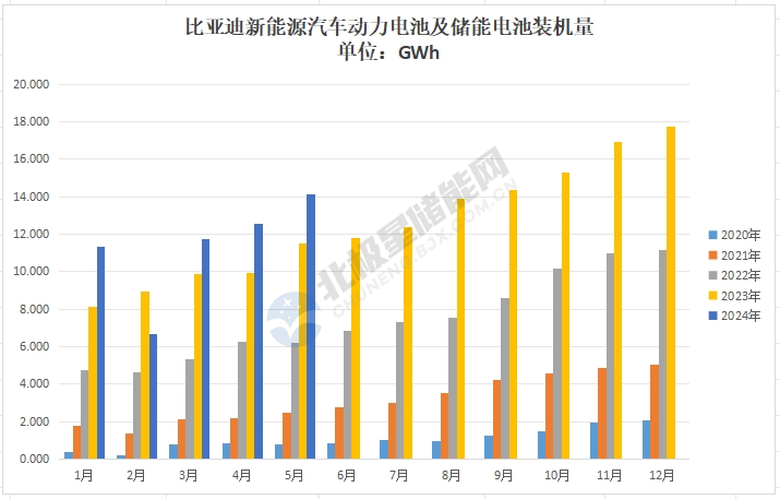 6月2日,比亚迪发布公告显示,今年5月,比亚迪新能源汽车动力电池及储能电池装机总量约14.159GWh,今年累计装机总量约56.454GWh。