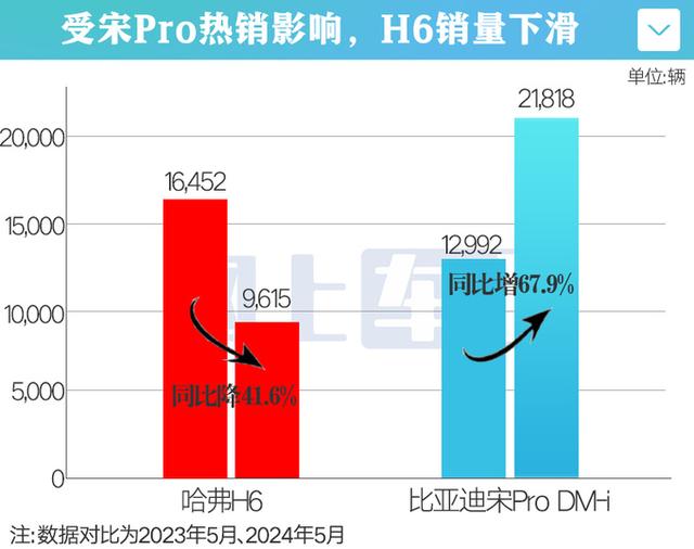 H6的竞品车型比亚迪宋Pro DM-i同月销量21,818辆,同比增长67.9%,H6销量的下滑受到了宋Pro DM-i销量上涨的影响。