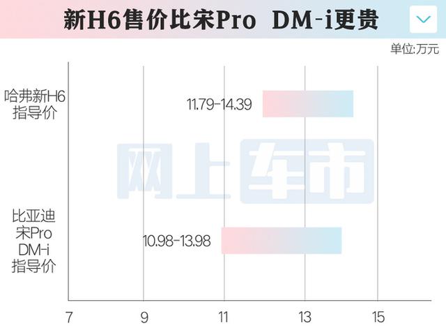 新哈弗H6官方售价11.79-14.39万元,起售价上调2,000元,比宋Pro DM-i更贵。宋Pro DM-i搭载插电混动系统,可油可电,百公里馈电油耗5.3L,用车成本更低。H6 1.5T的百公里综合油耗7.13L,2.0T四驱油耗达到8.1L/100km。