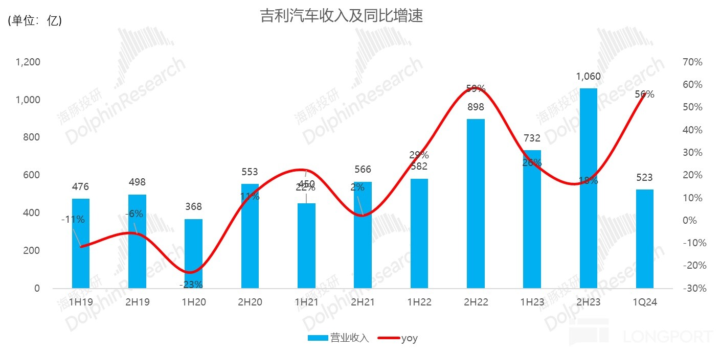 从吉利一季报业绩来看,收入端基本符合海豚君的预期,但毛利率端低于海豚君的预期。