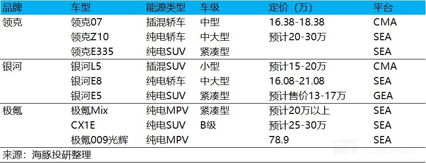而吉利今年在新车型上仍以纯电为主,其中领克和银河首次推出纯电轿车领克 Z10 和银河 E8,但纯电车型价格带上与极氪有一定重叠,预计可能会形成一定的销量蚕食。同时纯电车的竞争更为激烈,吉利自极氪成功打造极氪 001 爆款后再无爆款车型出现,纯电预计也很难实现销量端的大幅增长。
