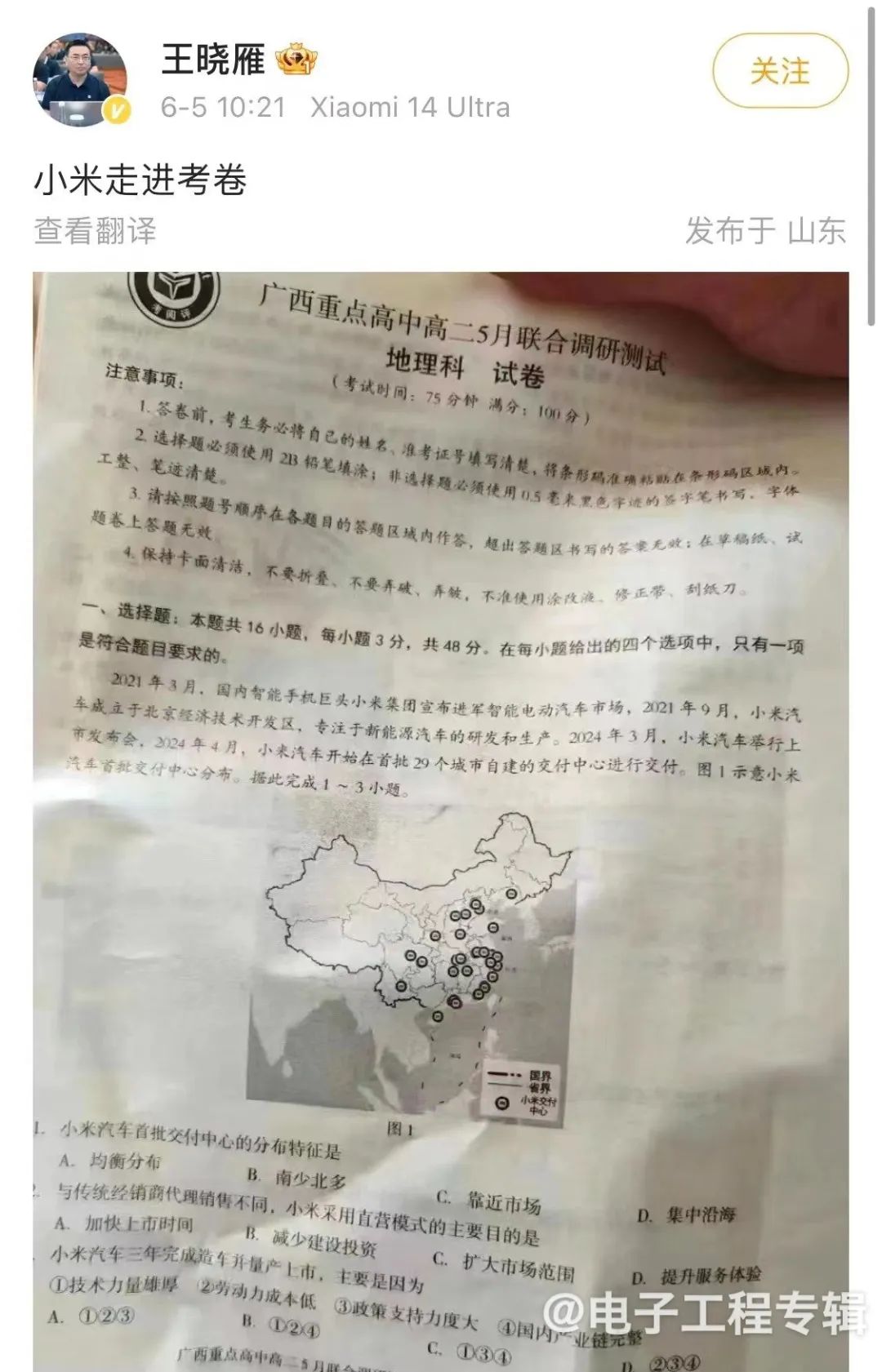 电子工程专辑讯近日,有关国产品牌企业的相关内容,包括LOGO等信息出现在部分地区的初中地理试卷上,引起广泛热议。