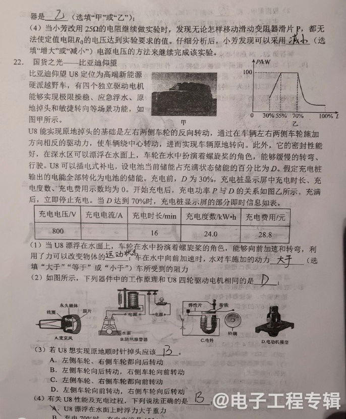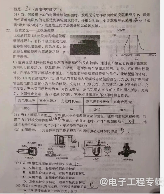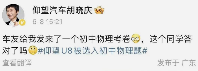 比亚迪的仰望、唐、汉出现在了中学的物理、化学甚至是政治经济习题中,考察了学生对于力与运动、受力分析、浮力、能量转化、等方面的相关识。
