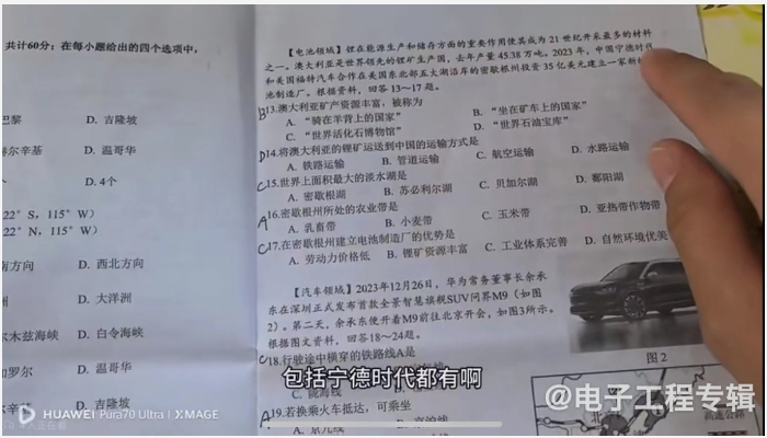 出现在试卷上的除了华为,还有宁德时代在“电池领域”的内容,该题内容如下: