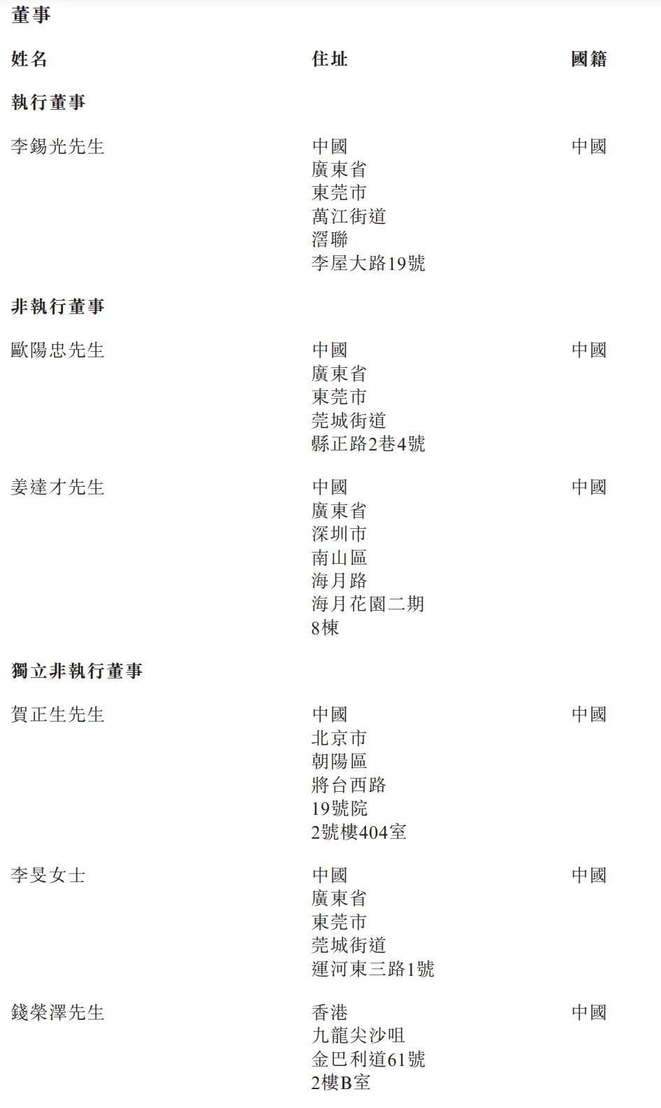 天域半导体执行董事为李锡光,非执行董事分别为欧阳忠、姜达才;独立非执行董事分别为贺正生、李旻女士、钱荣泽。