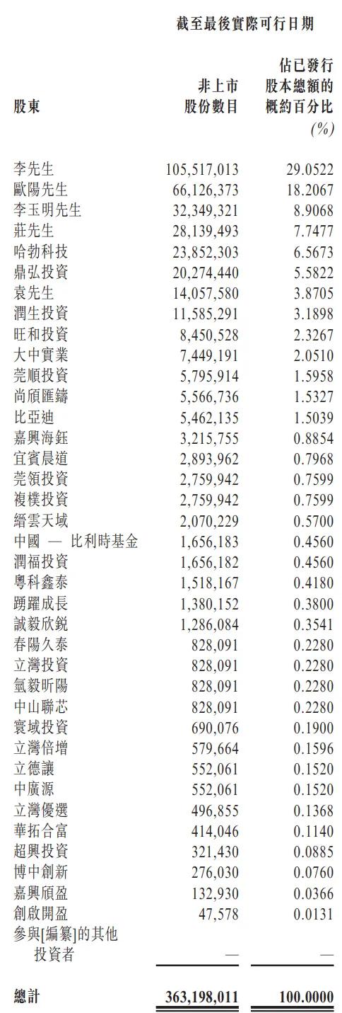 IPO前,李锡光以其个人身份直接控制约29.05%的权益并透过鼎弘投资间接控制约5.58%的权益、润生投资间接控制约3.19%权益及旺和投资间接控制约2.33%的权益;由欧阳忠以其个人身份直接控制约18.21%的权益。