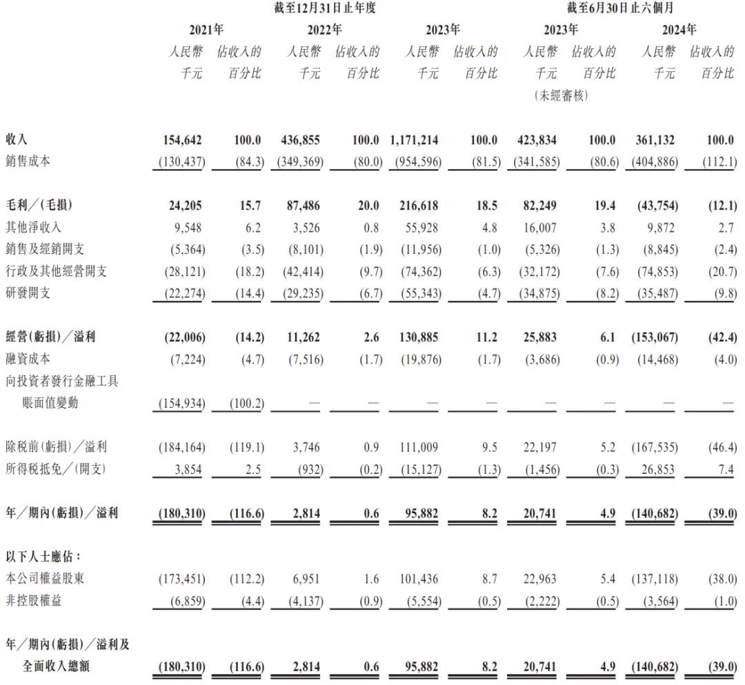 天域半导体2024年上半年营收为3.61亿元,较上年同期的4.24亿元下降14.9%;毛亏损为4375万元,上年同期的毛利润为8224.9万元;期内亏损为1.41亿元,上年同期的期内利润为2074万元。