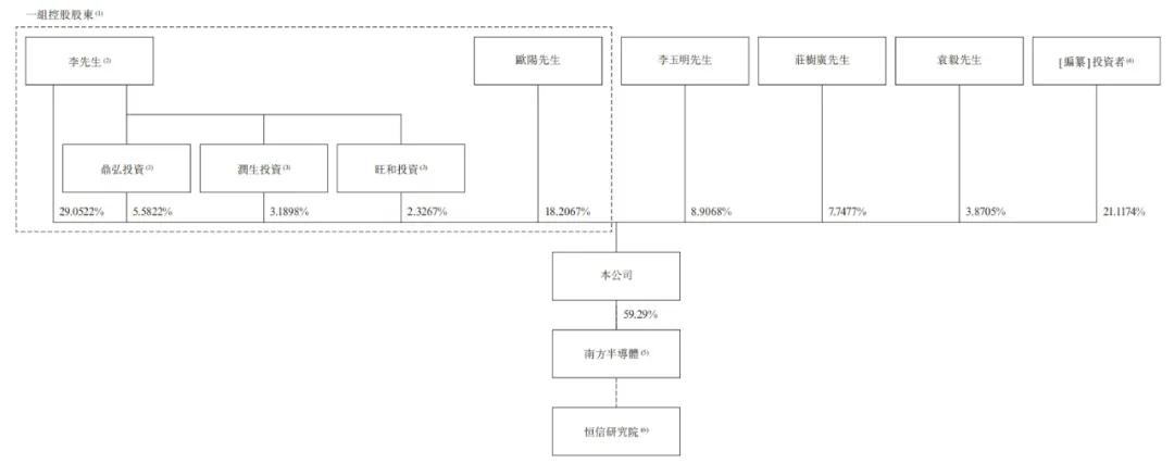 李锡光、欧阳忠、天域共创、鼎弘投资、润生投资及旺和投资被视为一组控股股东,共持有已发行股份总数的58.36%。