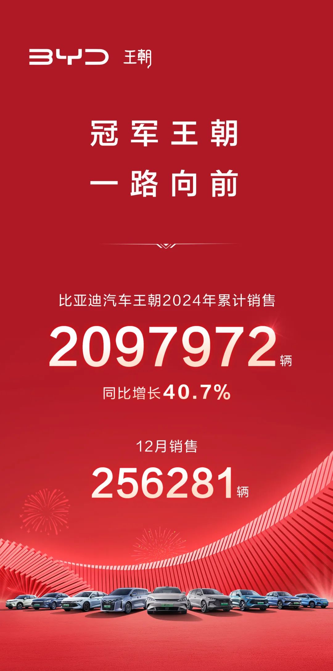 比亚迪王朝2024年销售超200万辆 ,同比增长40.7%