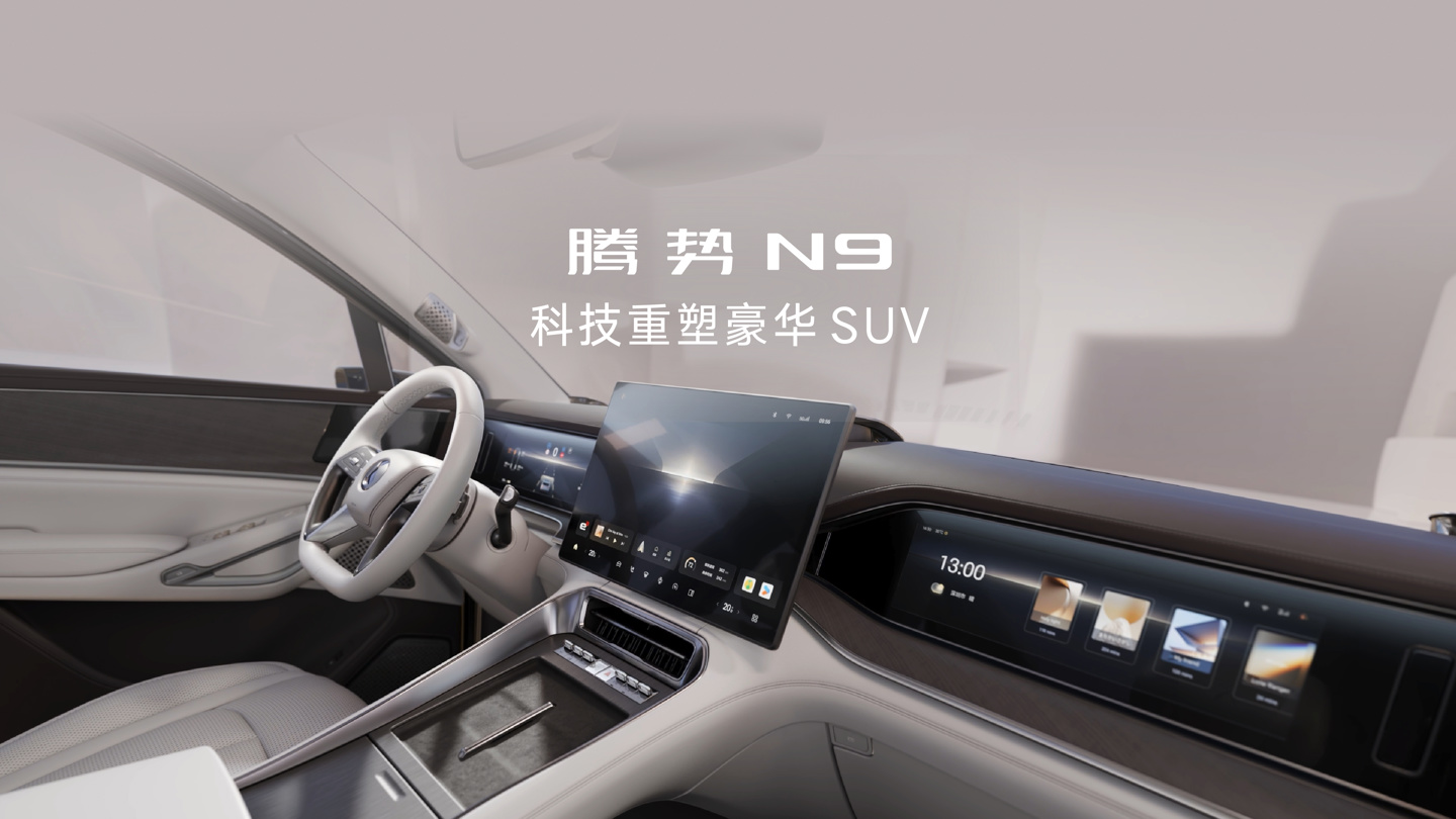 腾势 N9 汽车定位中大型旗舰 SUV,采用腾势家族最新的设计语言,配备易三方技术,尺寸为 5258×2030×1830mm、轴距为 3125mm。