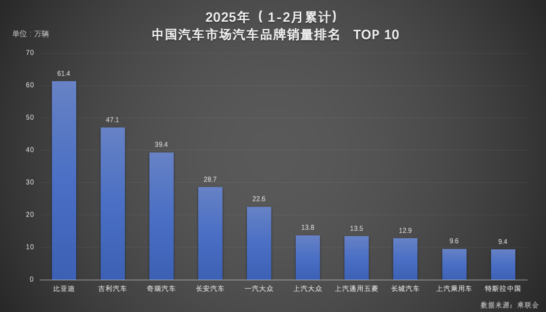 从整体市场环境来看,2025年1-2月乘用车市场呈现出结构性复苏的态势,尤其是新能源汽车,产销延续快速增长。据乘联会数据,1-2月全国乘用车厂商批发386.5万辆,同比增长12.7%。新能源车成为拉动市场增长的核心动力,1-2月累计批发171.9万辆,增长48.0%。