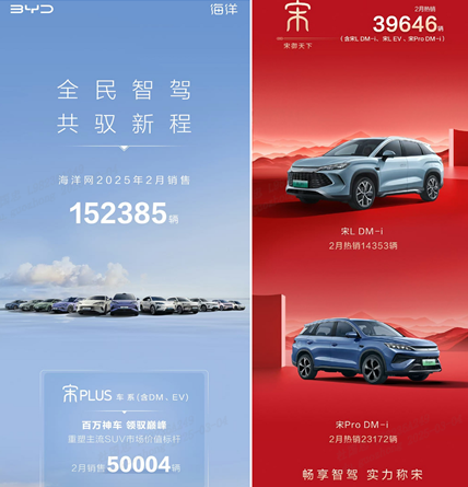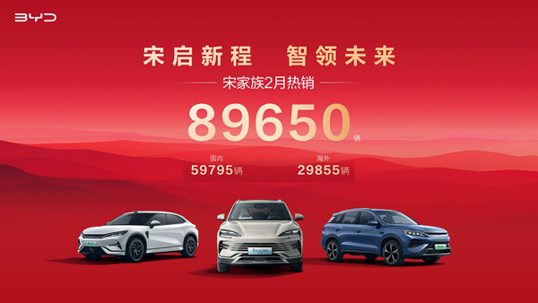 宋家族1-2月海外狂销57,878辆,创中国SUV出口新纪录!此外,比亚迪2月海外销量6.7万辆中,宋家族贡献率达53%,"混动+纯电+智能"三位一体模式被外媒评价为"重新定义全球新能源SUV价值标准"。