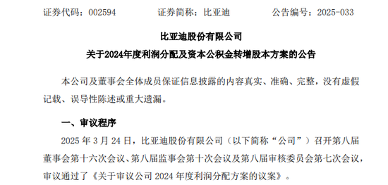 4月22日,比亚迪发布公告,为积极回报投资者,优化公司股本结构,在120.77亿元分红方案基础上,拟每10股送红股8股,以资本公积金每10股转增12股。