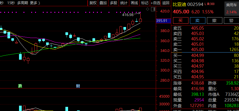 近日,比亚迪股价连续上涨,截至周五收盘,比亚迪A股收于405元/股。