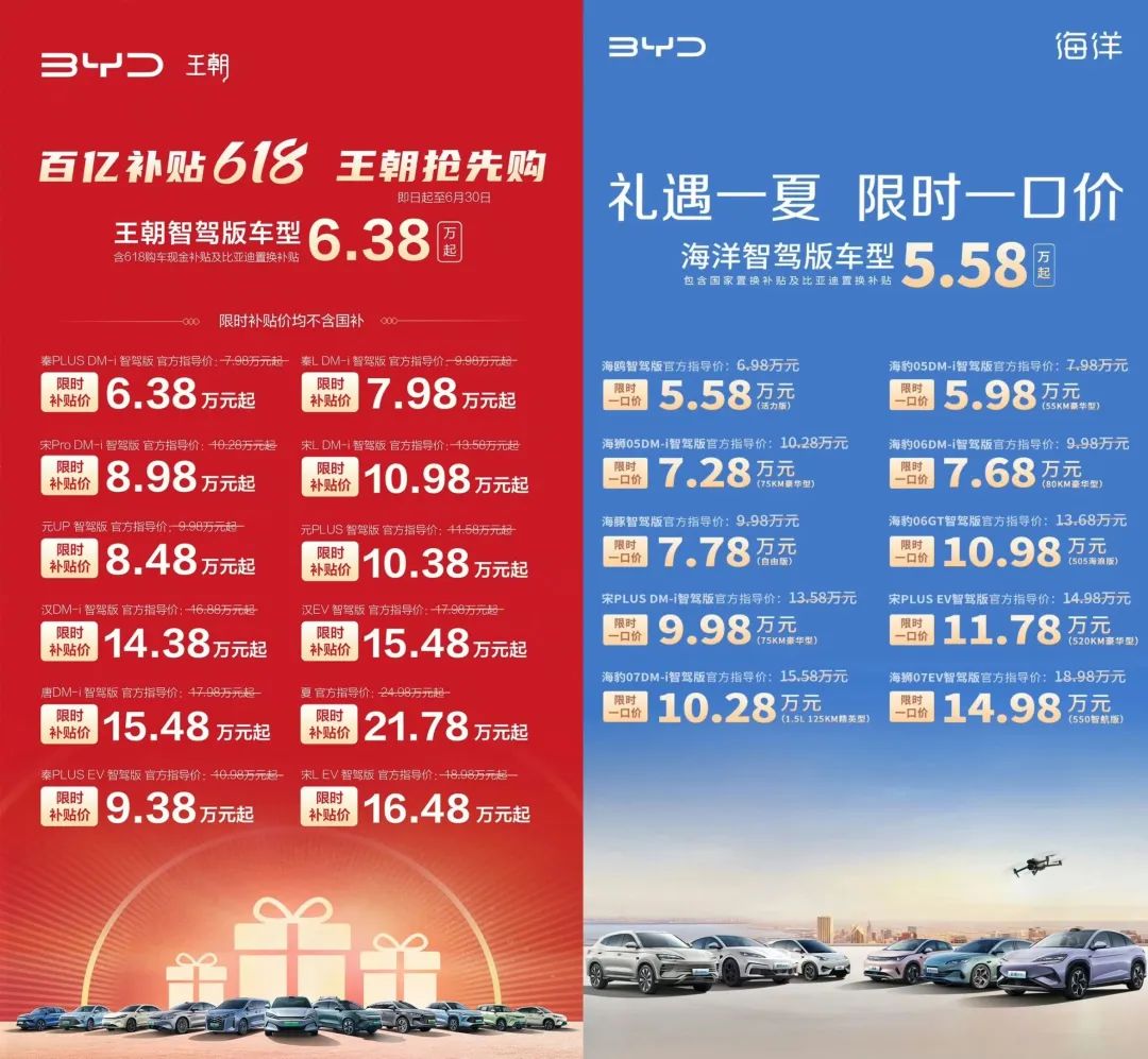 今年3月底,比亚迪海洋网、王朝网部分非智驾版本的入门车型推出限时“一口价”,秦L DM-i非智驾版起售价降低1万元至8.98万元,宋L DM-i非智驾版起售价降低1.6万元至11.98万元,宋PLUS DM-i官降低1.6万元至11.98万元等。