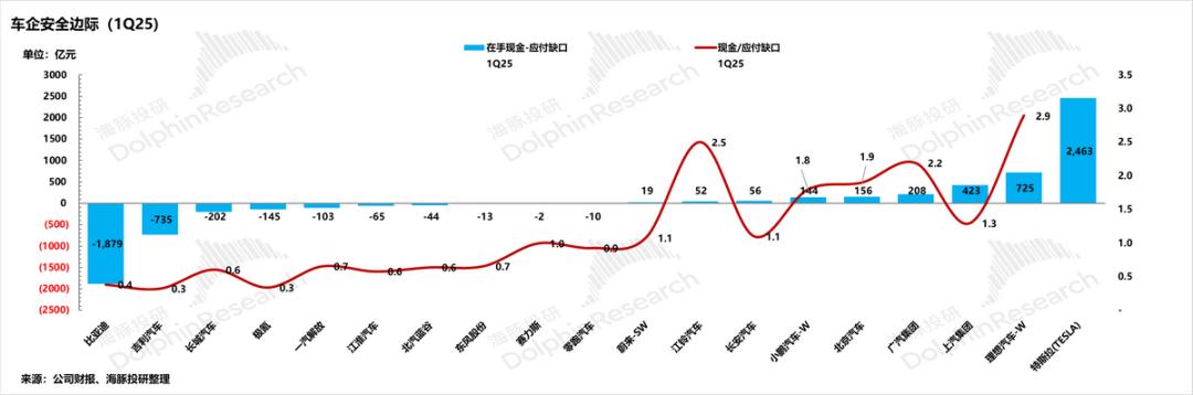 1)最安全第一梯队,安全边际最高:特斯拉(本身账期短+高在手现金)和理想(经营现金流充裕),在手现金完全能覆盖应付缺口,还能用一定现金剩余来应对日常经营,完全无需额外债券或者股权融资;