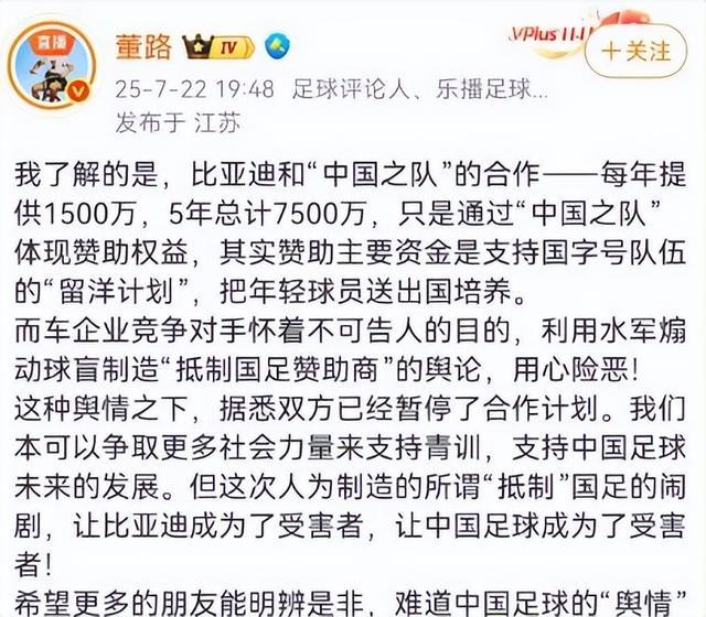 这已经不是这个月比亚迪第一次遭遇冲击了。之前有消息称,比亚迪将投入5年7500万元,用于国字号足球队的“留洋计划”,也就是花钱助力国字号球队的青训工作。但是据董路的足球行业人士披露,比亚迪此项计划提出后,有车企竞争对手发动水军,以“抵制国足赞助商”的名义,抵制比亚迪……
