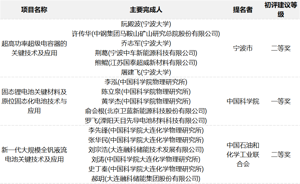 值得一提的是,陈立泉院士和卫蓝新能源参与的固态锂电池关键材料及原位固态化电池技术与应用,初评建议一等奖!