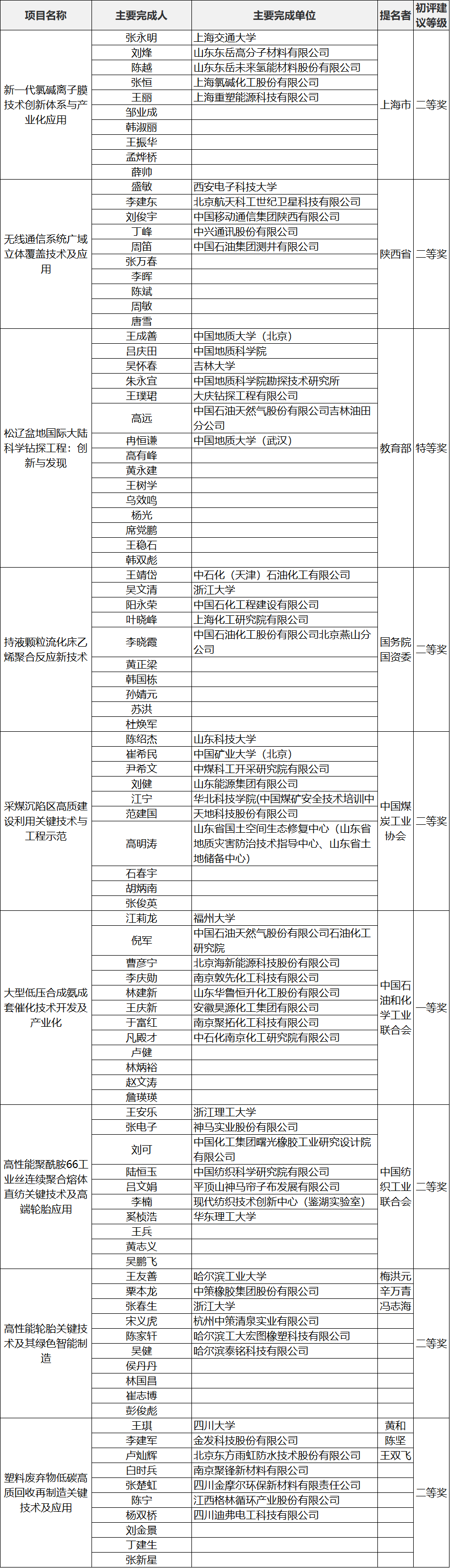 山东东岳 参与的 新一代氯碱离子膜技术创新体系与产业化应用项目;